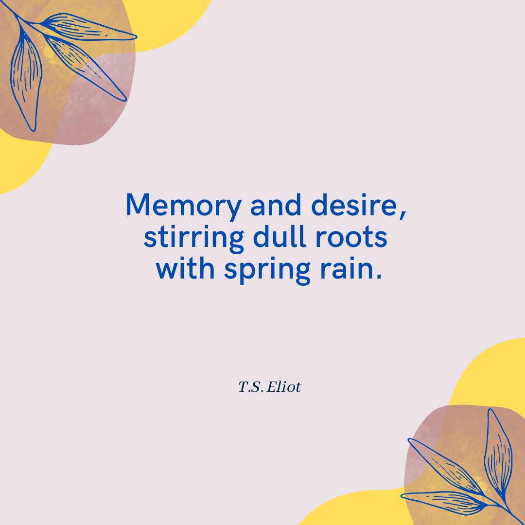 I read T.S Eliot’s, The Waste Land, for the first time when I was a high school junior. Obviously, I didn’t fully understand it at the time. I am not sure I do now, but the opening line stuck with me. At that point in my life, I was very naïve and did not know yet what real adult problems were. In April of that year, I was preparing for prom, ACTs, A.P. tests, banquets, finals, working a lot, and dealing with other issues. The month of April was exhausting and cruel to my 17-year-old mind. I only had a taste of what stress and trauma were, but it never failed every year going forward, the month of April felt chaotic, stressful, and overscheduled. It is possible that April is not any busier than any other time of year, but rather the call of warmer weather and new life bursting through the soil beckons us. Like the bulbs in the ground, we have been couped up in our warm offices and houses all winter and we are ready to be outside, refreshed and renewed. It seems cruel to continue pushing though our daily routine when nature and longer days are inviting us.